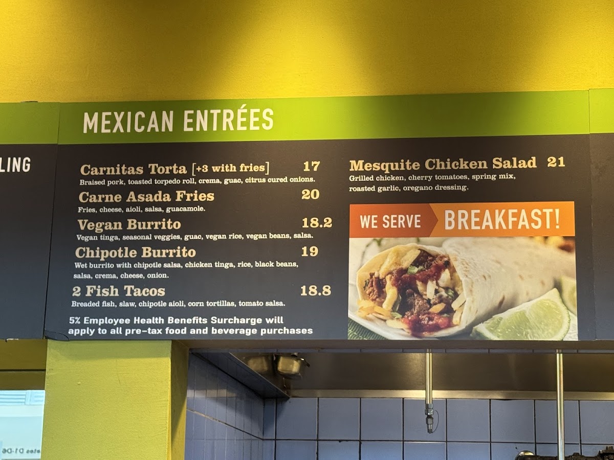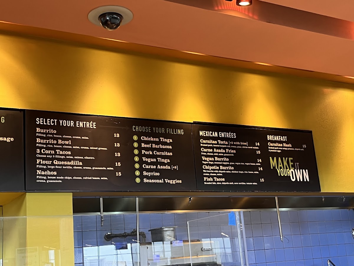 Guests can enjoy a variety of options that work well for mornings or midday meals—such as the Breakfast Burrito with Sausage or the Chilaquiles—as well as light but complete plates like the Mesquite Chicken Salad or the Vegan Tinga Bowl. Small bites including guacamole with salsa and chips or crispy tacos provide easy, shareable snacks that suit the relaxed atmosphere.