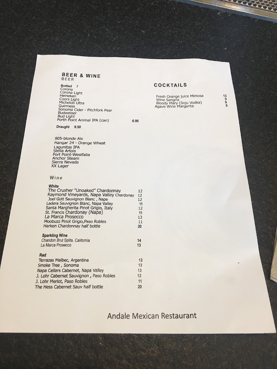 The beverage choices, from refreshing Agua Fresca to citrus-forward mimosas and margaritas, complement the food with simple, bright flavors that enhance the overall dining experience. The menu’s balance of vibrant and familiar dishes pairs neatly with Andalé’s friendly, casual vibe, making it a comfortable spot for people to enjoy everyday moments over good food and drink.